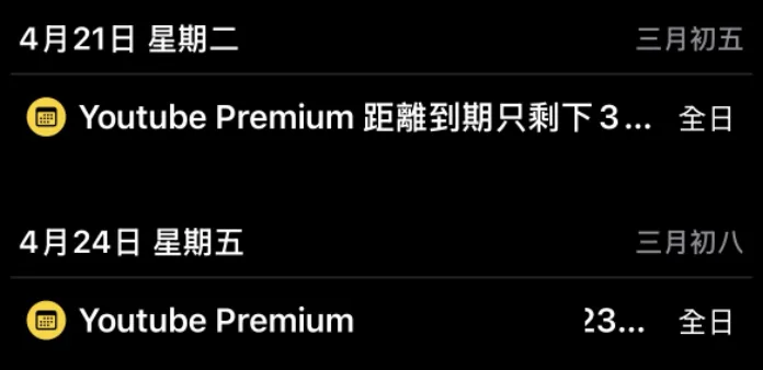 ⚠️注意:如果使用Android Version 嘅用戶必須每次購買後重新訂閱一次,日曆不會自動更新